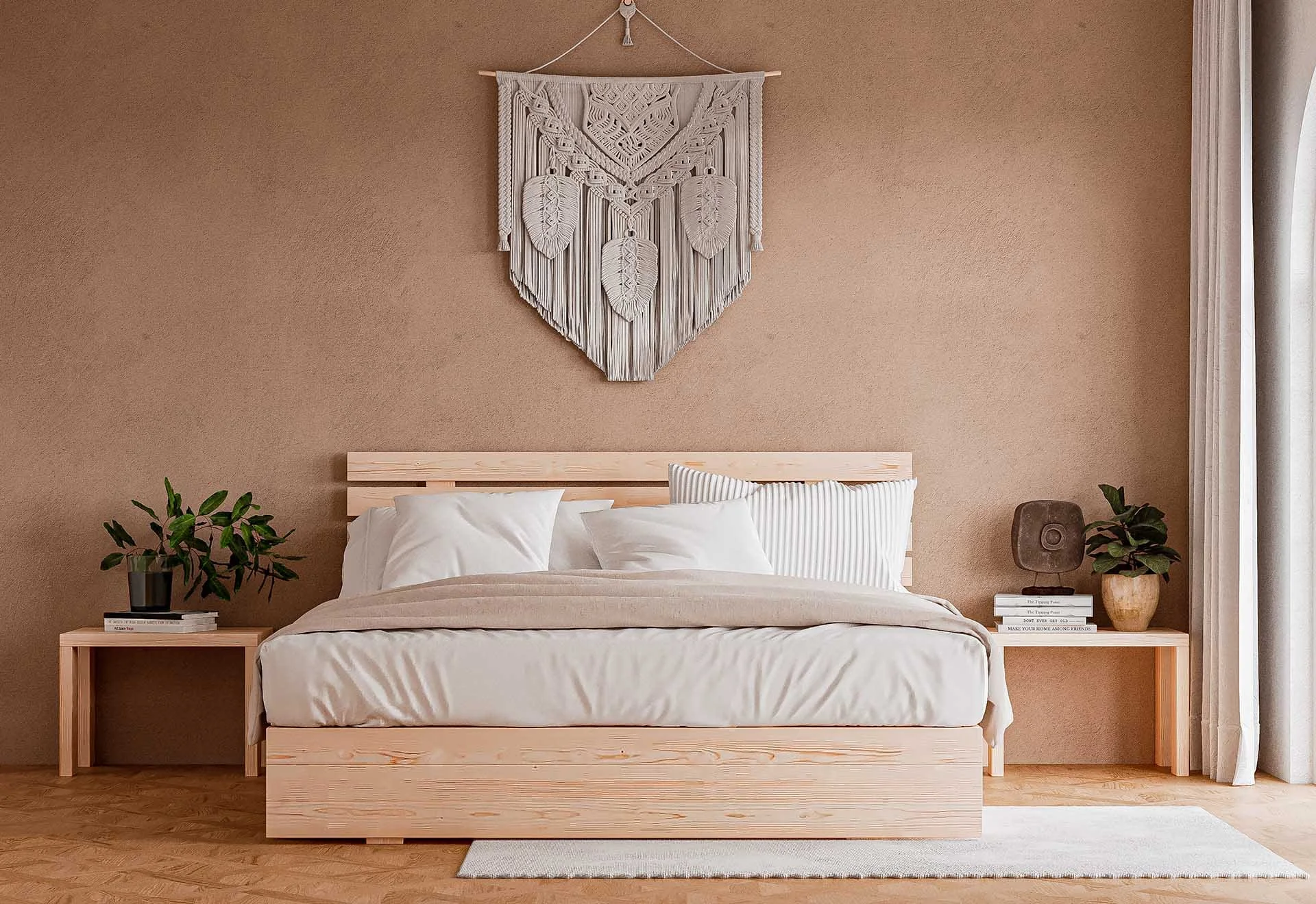 בתוספת: חזית מיטה העשויה עץ אורן טבעי המשרה אווירה נעימה וחמימה בחדר השינה. ולמעשה תוחמת את החלל שתחת המיטה.